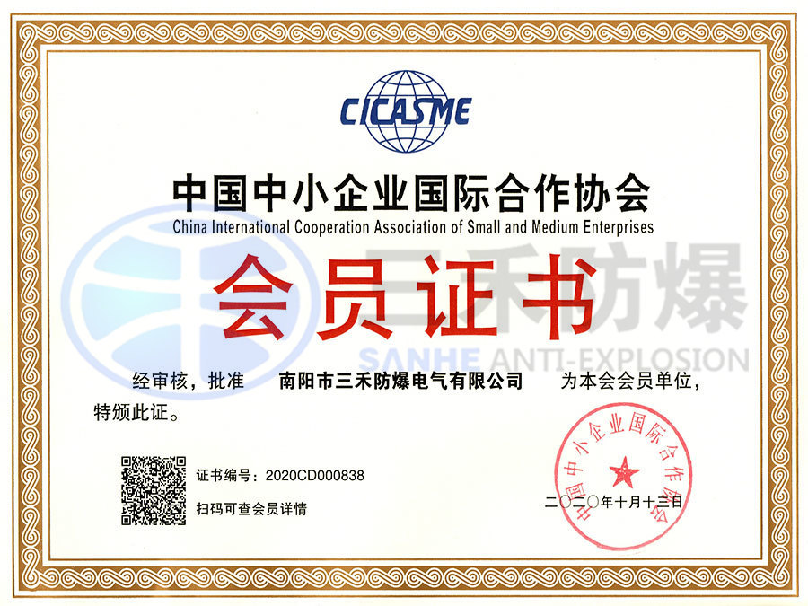中國中小企業國際合作協會會員證書